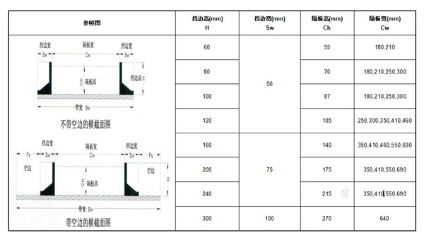 挡边及隔板规格如下: