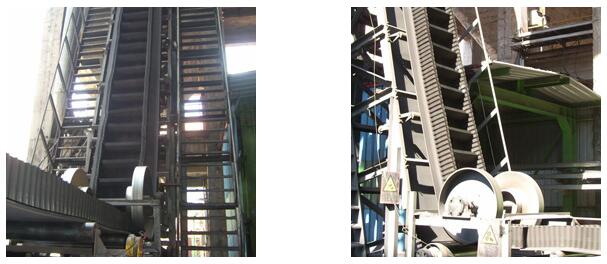 波形挡边输送带采用(yòng)成槽度不大于0.03的基带和挡边、横隔板(水平运输可(kě)不要)经两次硫化而成。