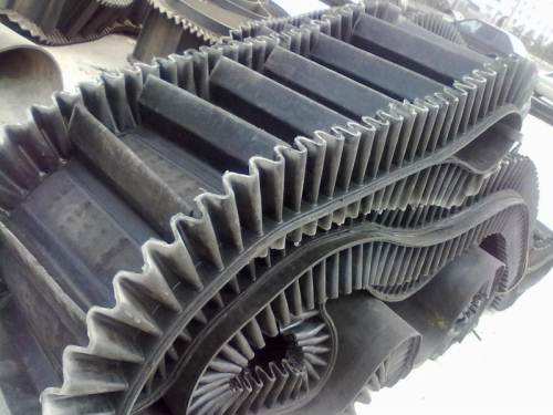 波形挡边输送带一般和波形挡边输送机配合使用(yòng),其使用(yòng)角度一般≥30°,也可(kě)以和通用(yòng)带式输送机配套,用(yòng)于水平、短距离输送(此时一般不设隔板)。